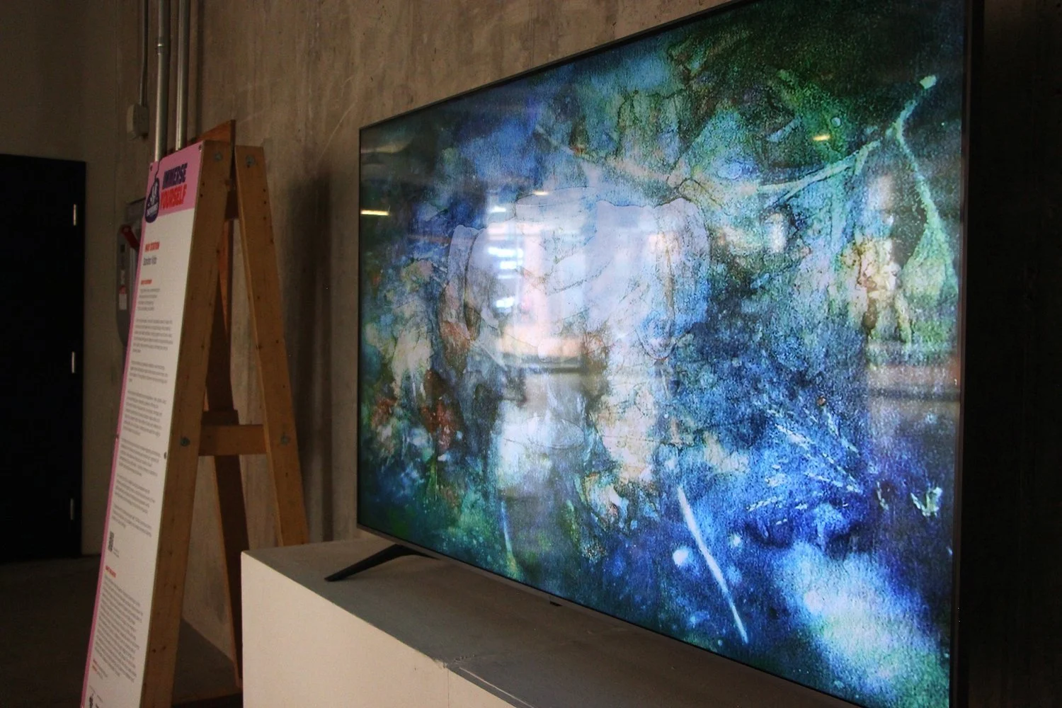 Sandra Vida, WAY STATION, video, Stantec Tower, Edmonton, AB, 2023. Photo by Liisa Otchie.