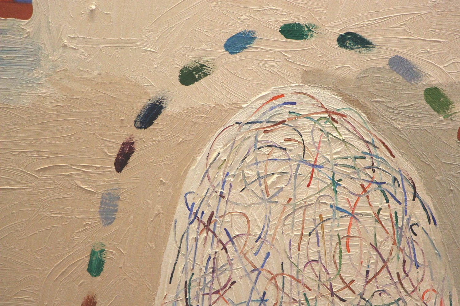 Erika Germain, Detail of What Could This Ever Mean to You, Oil on canvas, 2021, 5’ x 5’. Don Wheaton Family YMCA, Edmonton AB. Photograph by Au7umn.
