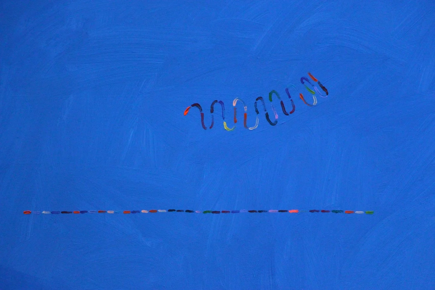Upon initial viewing, what may strike people about Erika Germain’s Collected Translations is the expansive plethora of colours, lines, and objects that inhabit the coloured canvas of each work, which lack any conventional visual cues or signposts to guide people’s interpretations of them. Instead, these works encourage people to approach them without preconceptions and to arrive at their own understandings about what they mean and how the images within each work relate to each other. Prompting reflection, these works encourage open-ended articulations of meaning and points of significance that resonate with viewers.