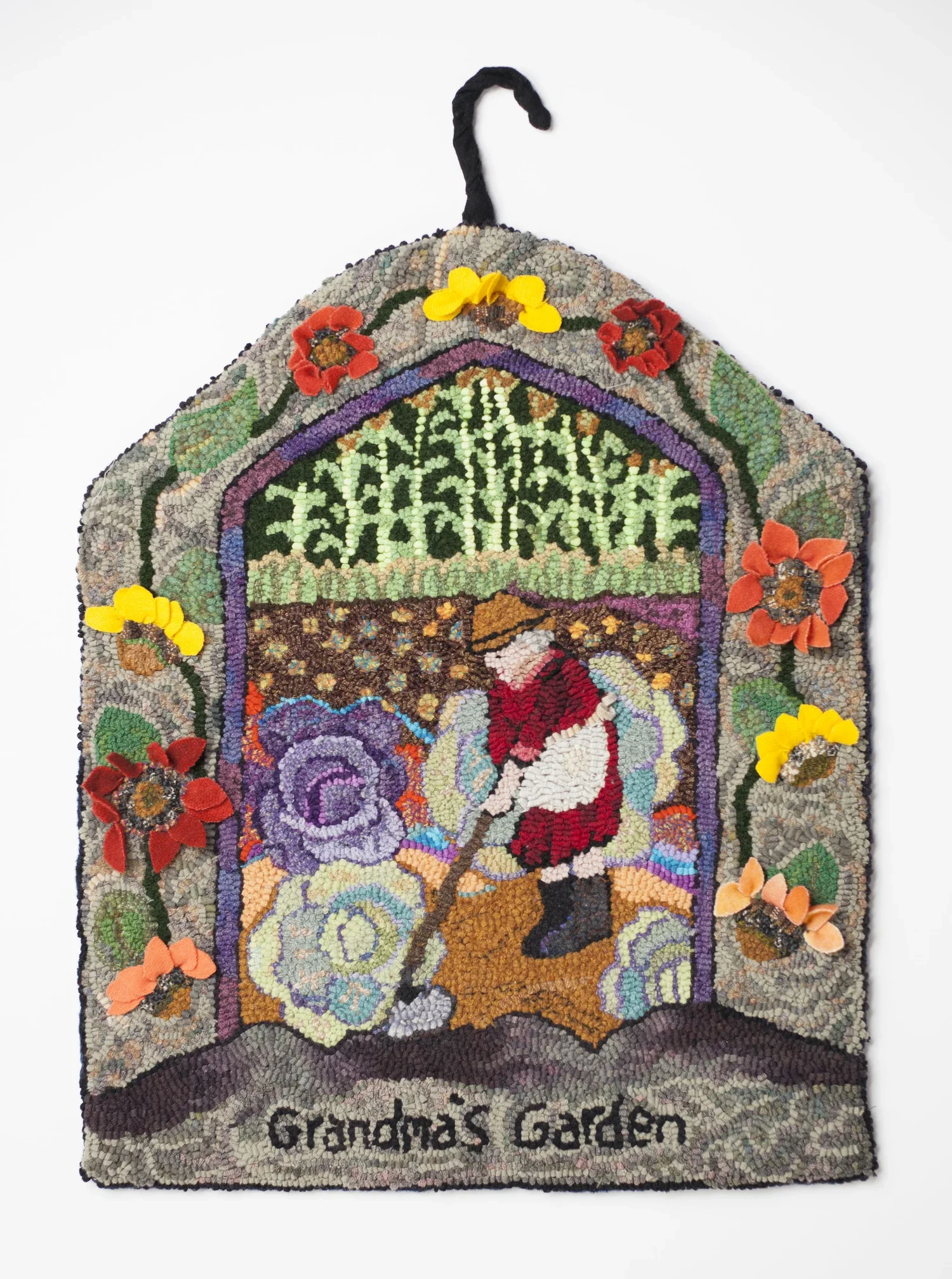 Critic Sharon Marcus has commented on how fibre work has become more conceptual in recent years due in part to postmodernist influences, which has led to the creation of work that deals with various cultural and political issues. Indeed, the range of work in this exhibit varies from the highly personal to the broadly societal. For example, Lynne Howard’s “Grandma’s Garden” is a highly biographical series that provides an intimate look at the artist’s grandmother, as told through narrative and scenic snapshots associated with her life. In doing so, Howard gives voice to her grandmother’s experiences and recognizes them as an important aspect of Canada’s story. Pat Minton’s “Settler’s Bonnet” also acknowledges her grandmother’s contributions to building the nation in her own way through her personal achievements.
