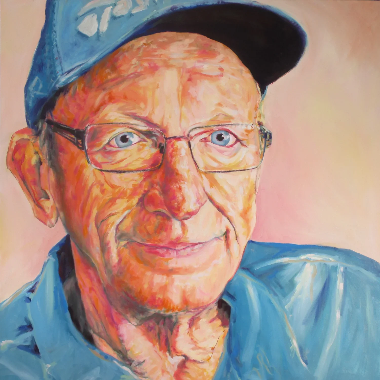 The paintings’ titles appear to refer to the person’s occupation, such as Wylie’s pieces “The Musician,” “The Student,” and “The Actor.” However, upon closer observation, it would seem that they are not to be considered simply in a literal sense, but perhaps in a metaphorical sense. Indeed, the work “The Musician” depicts a man with a long beard and glasses who is sitting in what appears to be a film director’s chair, without any indication otherwise that he is a musician; is this perhaps a reference to his role in filmmaking, which can be seen as a form of “music,” as the director is involved in realizing a vision by pulling all of the different components together? Or could this person actually be a musician who is dressed a bit unconventionally? Similarly, the obvious reference for the work “The Batman” could be the man’s t-shirt that has the Batman symbol, but perhaps this is also referring to something else about him that evokes the traits of that comic book character.